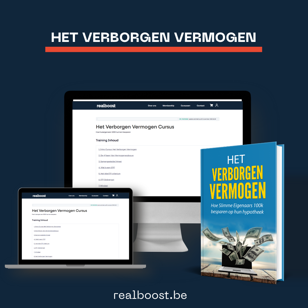 Directe toegang tot de RealBoost cursus “Het Verborgen Vermogen“, het boek Verborgen Vermogen en toegang tot de Realboost Discord Community– alles wat je nodig hebt om te starten met slim vermogensopbouw.